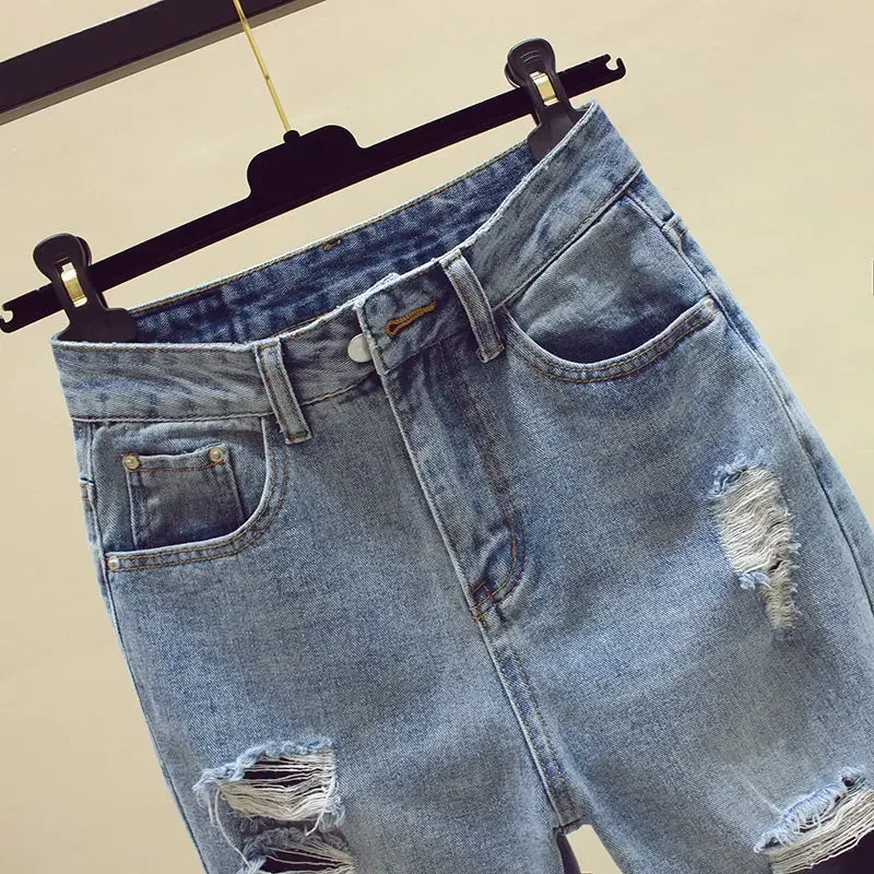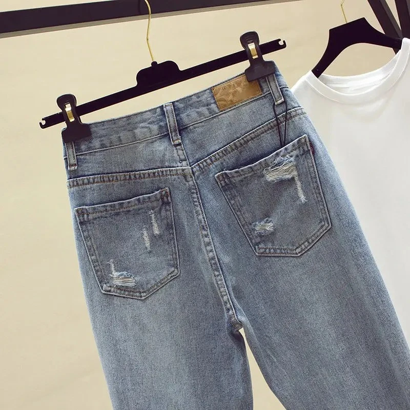 2025 spring summer autumn new Big size women fashion casual Denim Pants woman female ripped jeans for women