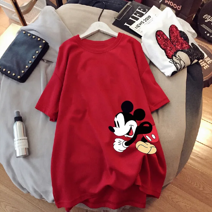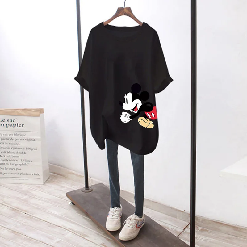 Disney Mickey Mouse T-shirt Summer Cartoon Mid-length Short-sleeved T-shirt Women's New Mickey Loose Large Size Half-sleeve Top