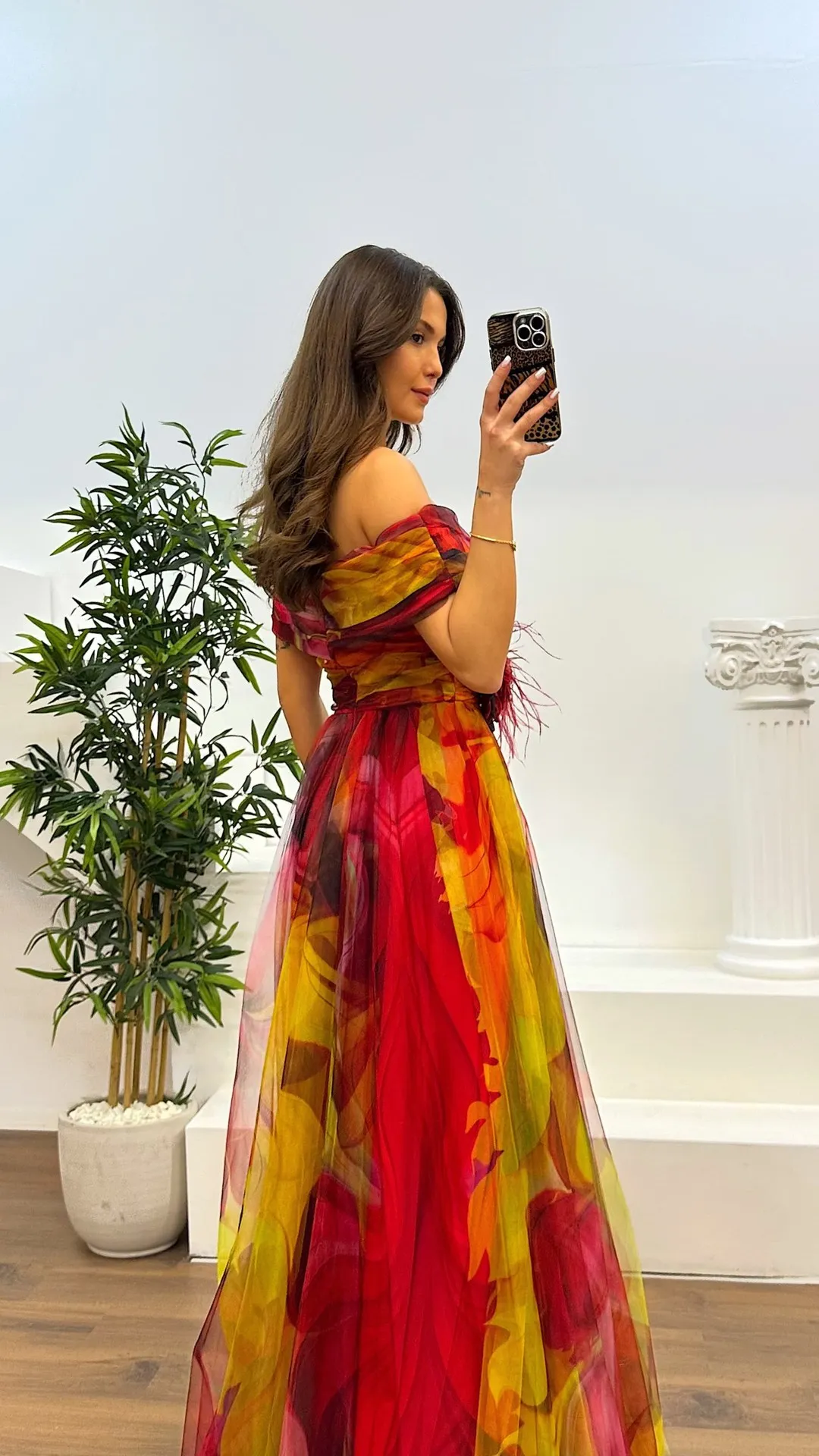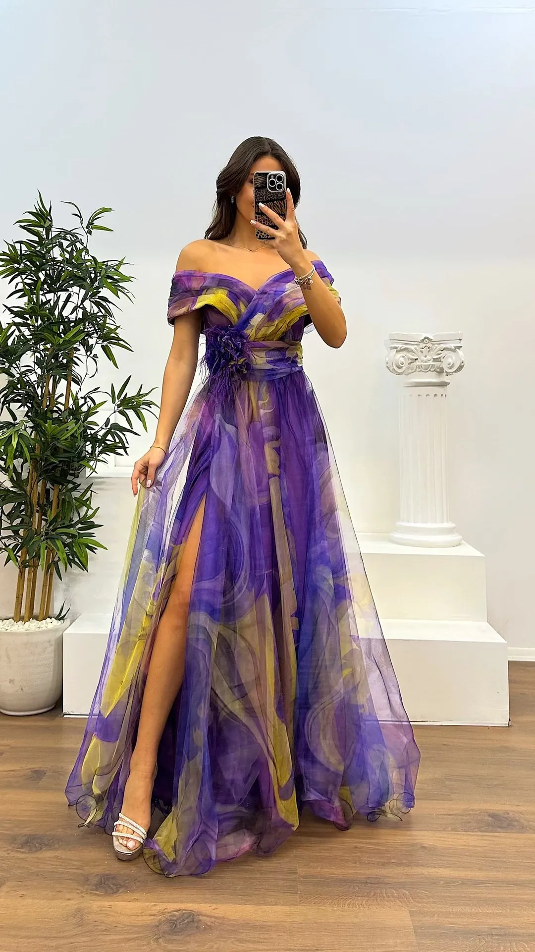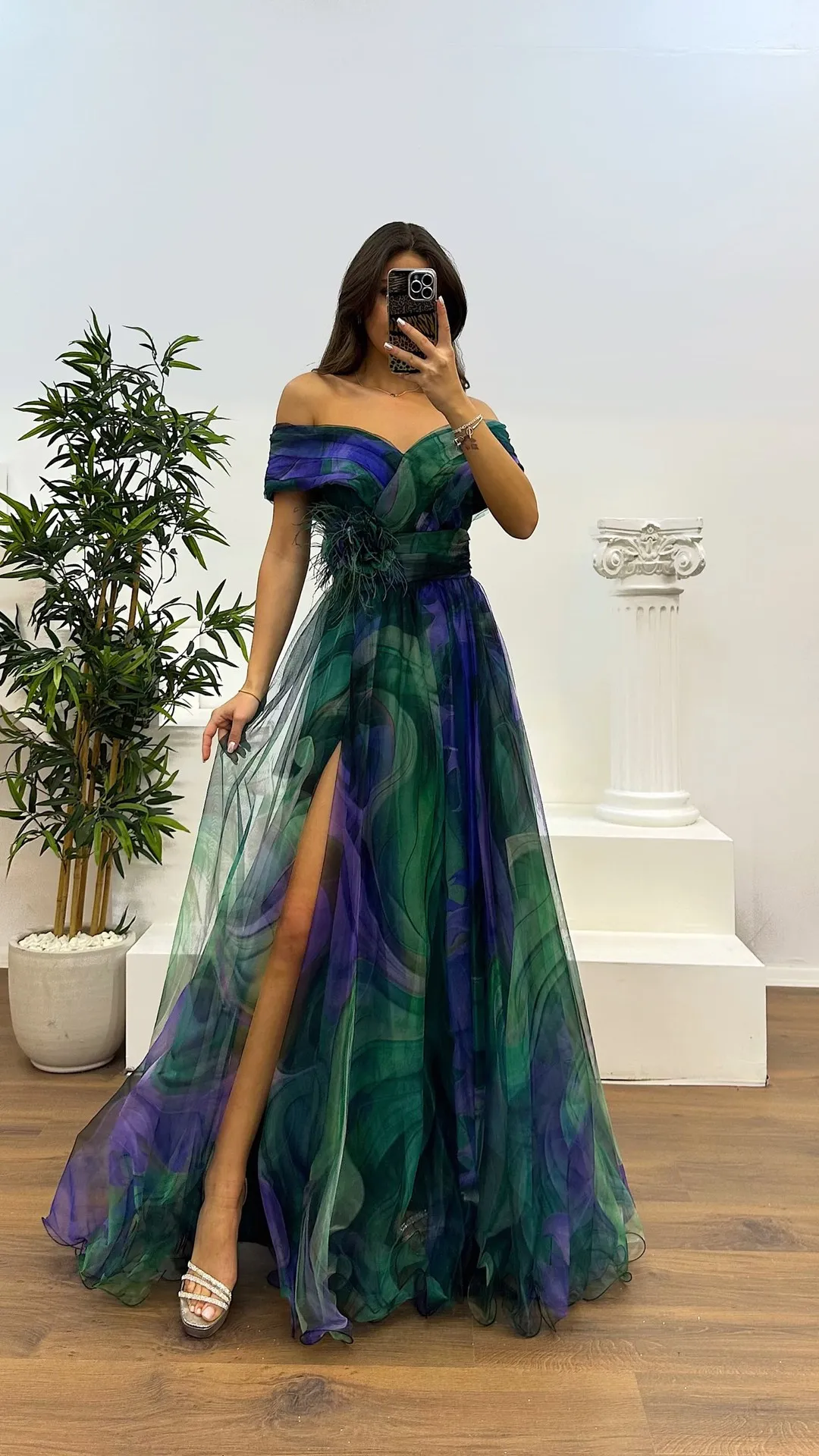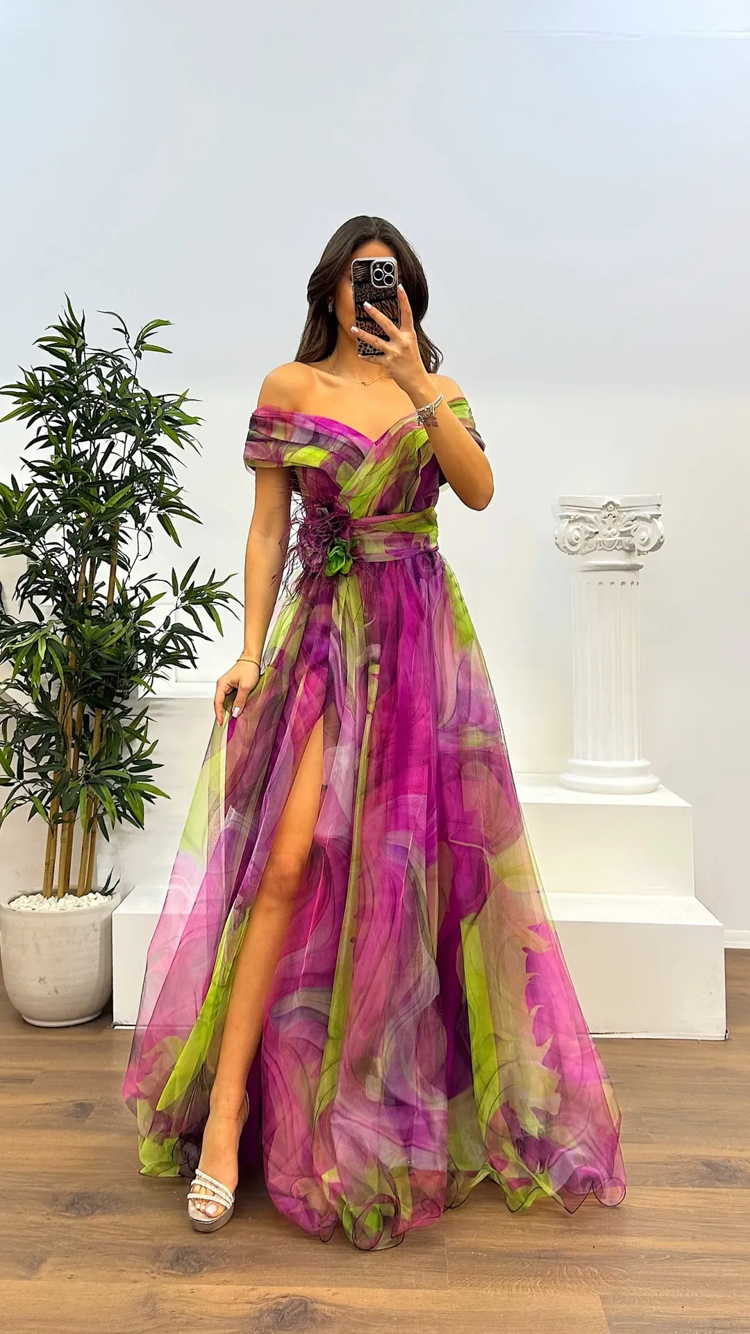 Elegant Formal Party Dress Elegant Tie-dye Ball Gown with Mesh Bubble Sleeves Split Hem Women's Evening Dress