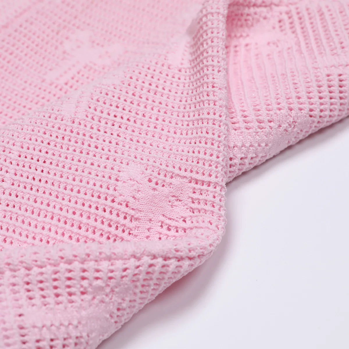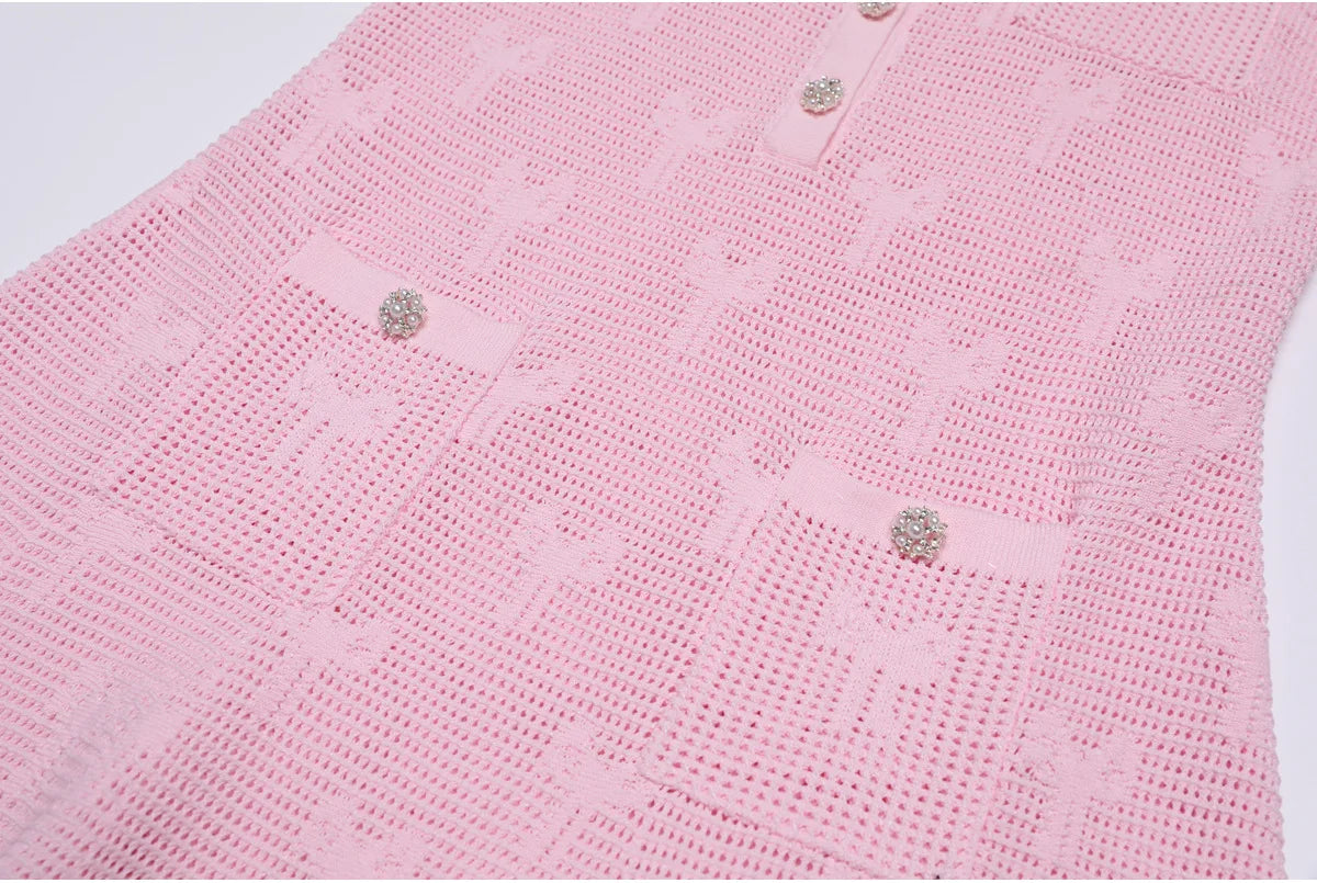 Europe America High-end Fashion Knitted Short-sleeved Dress 2025 Summer Clothes New Round Neck Temperament Woman A-line Dresses