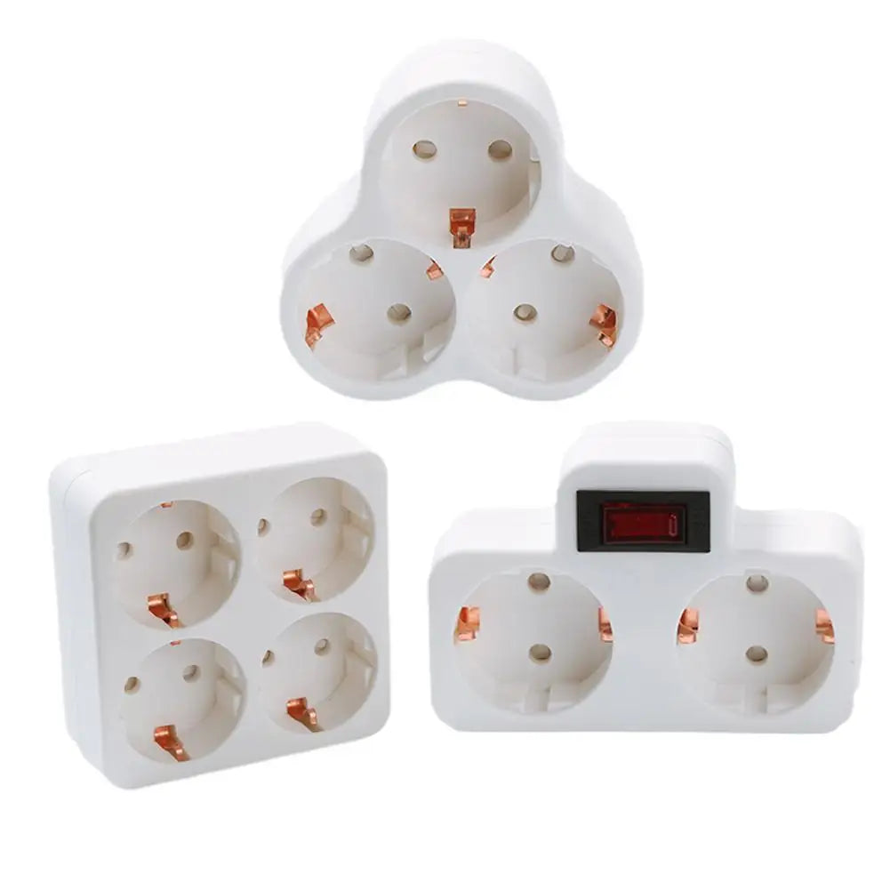 European Type Conversion Plug 1 To 2/3/4 Way EU Germany Standard Power Adapter Socket 16A 250V Travel Charging Adapter