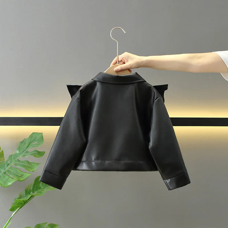Girls Leather Jackets Children Kids Classics Handsome Pu Outerwear Teenager Zipper Fly Coats Spring Autumn 2025 New