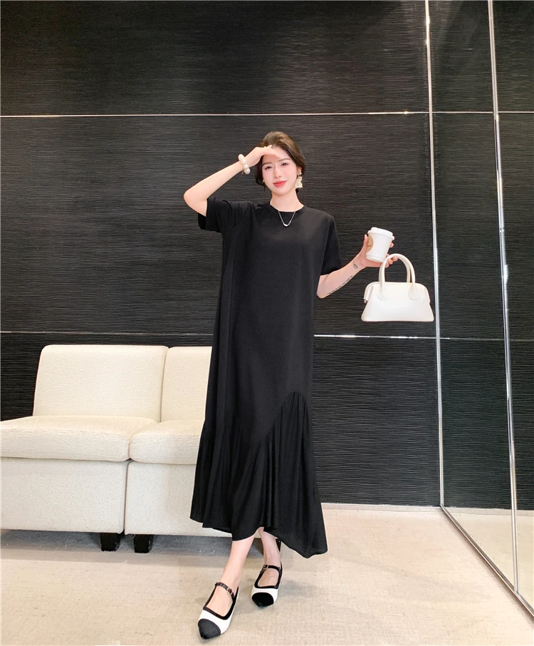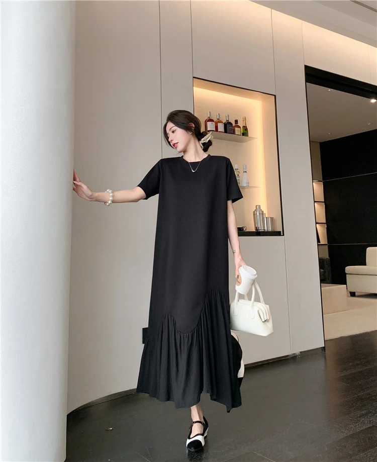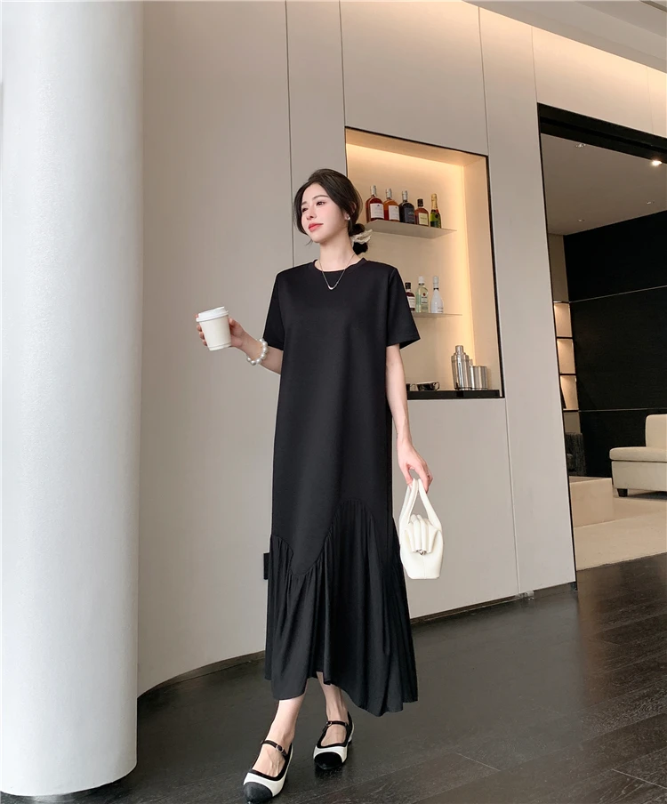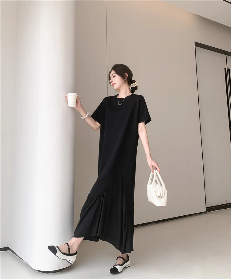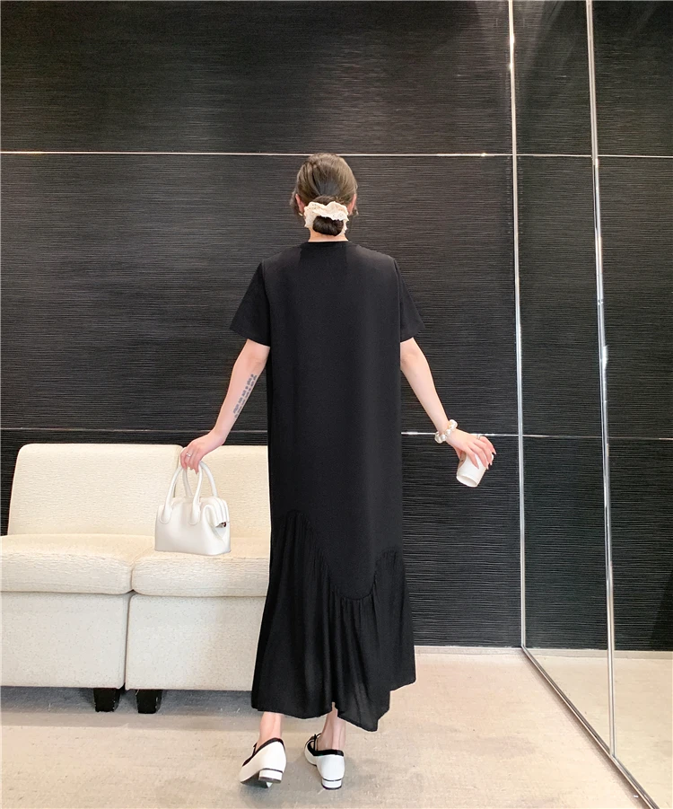 NYFS 2025 Summer New Korea Irregular Woman Dress Vestidos Robe Elbise Loose Plus Size Patchwork Short Sleeve Long Dress