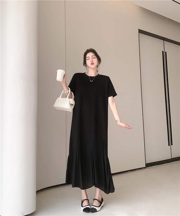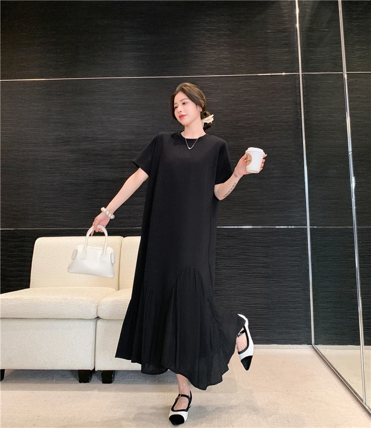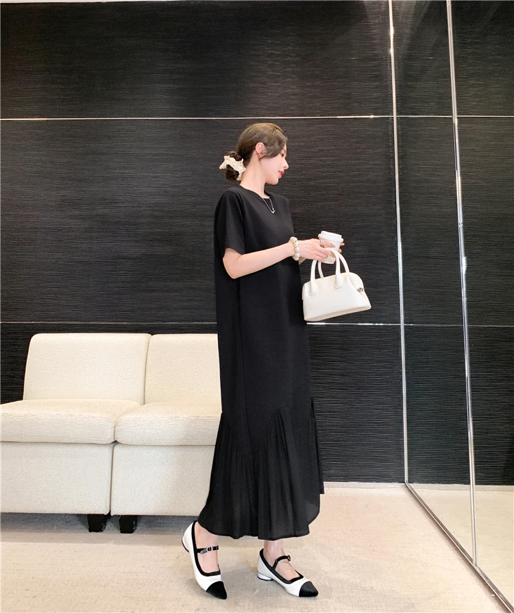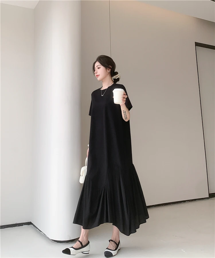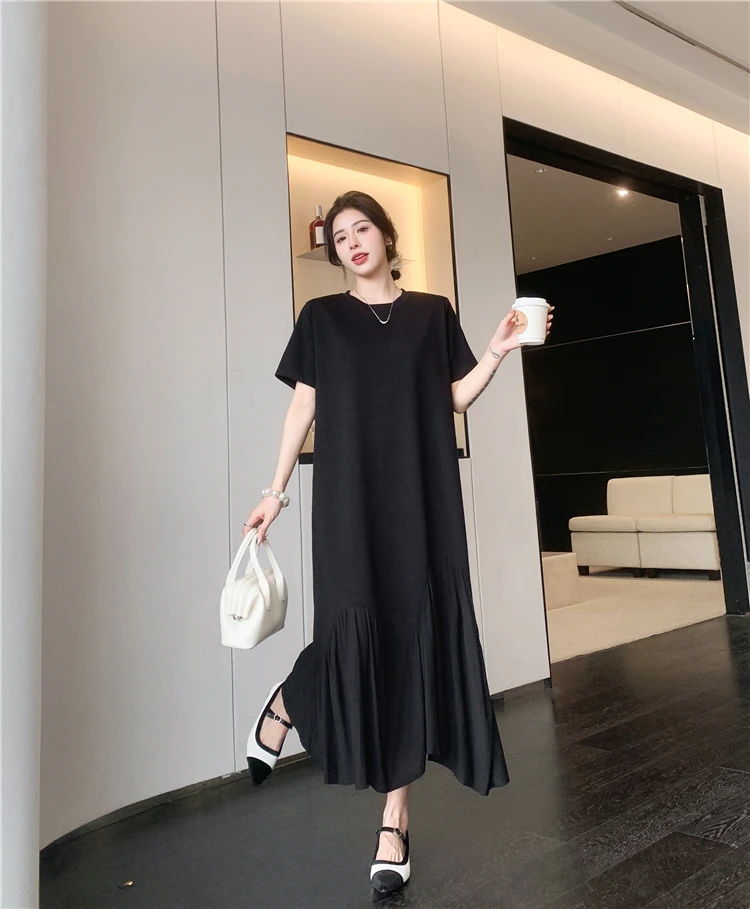 NYFS 2025 Summer New Korea Irregular Woman Dress Vestidos Robe Elbise Loose Plus Size Patchwork Short Sleeve Long Dress