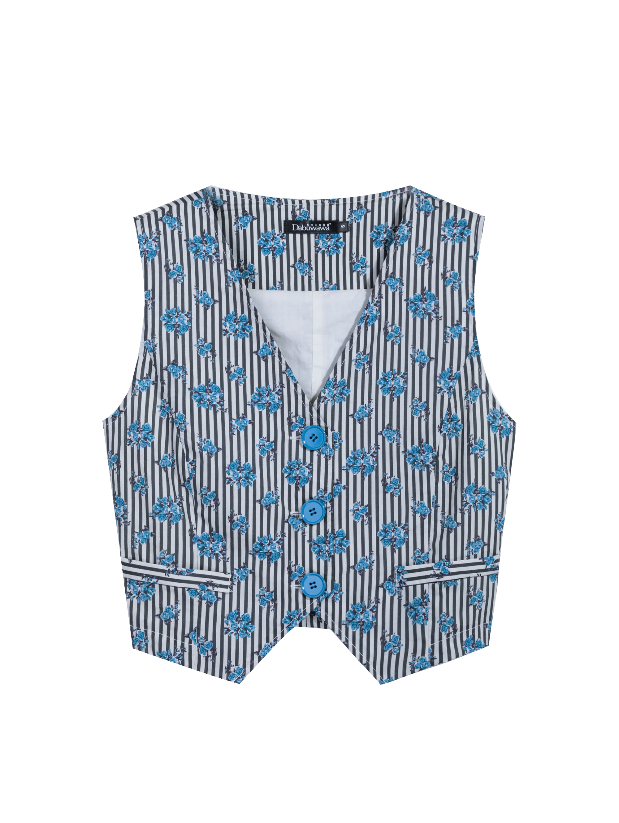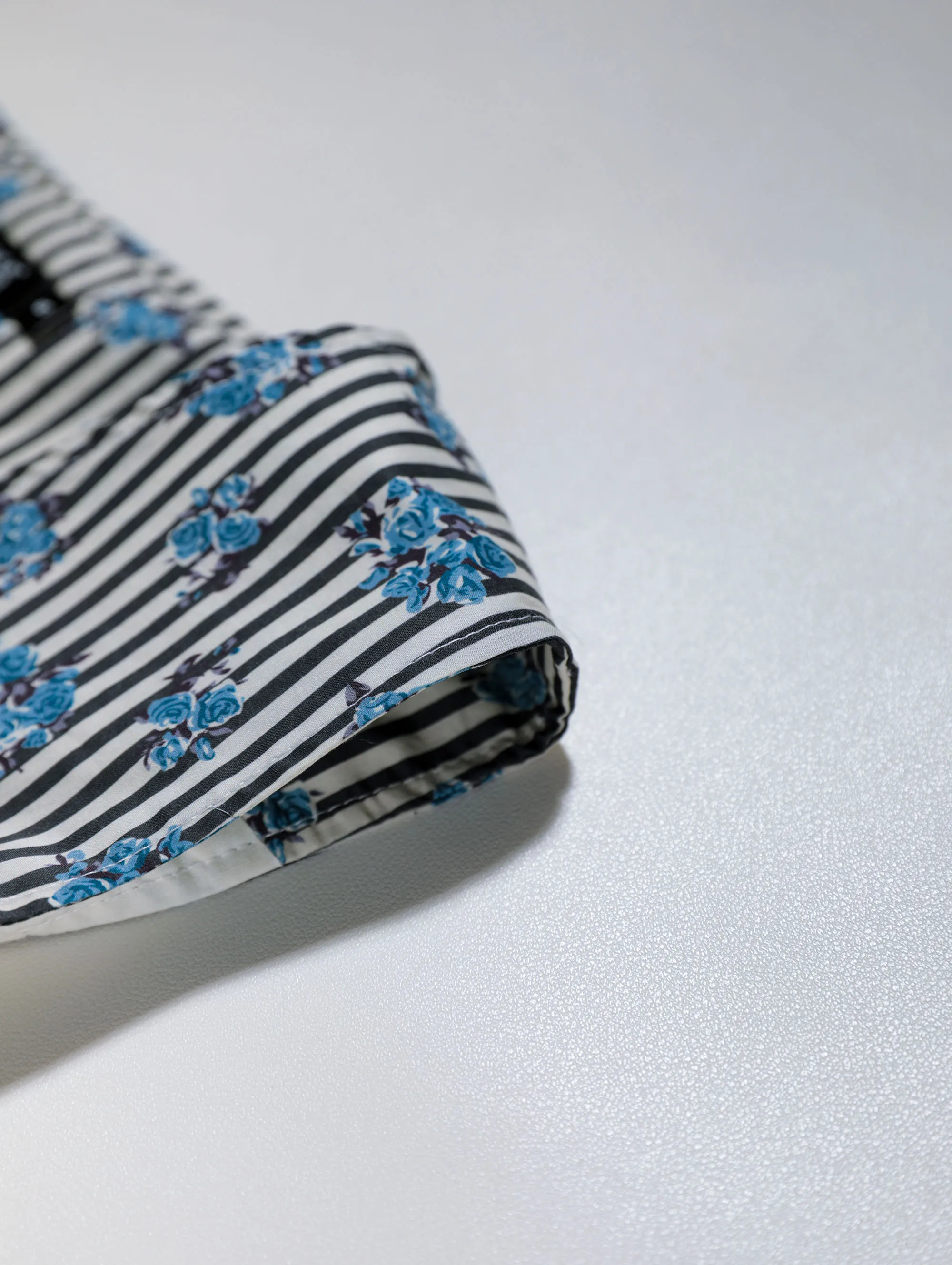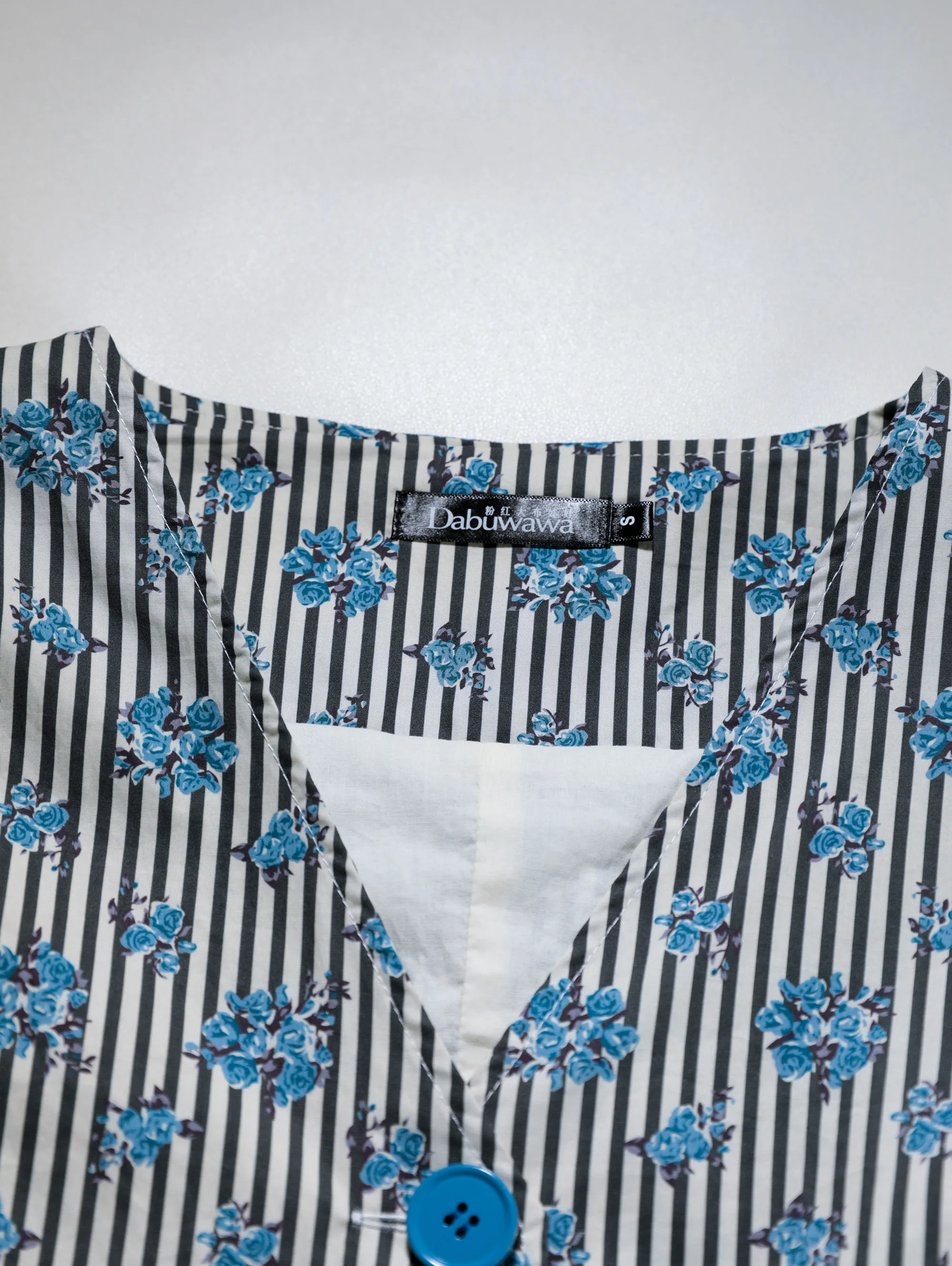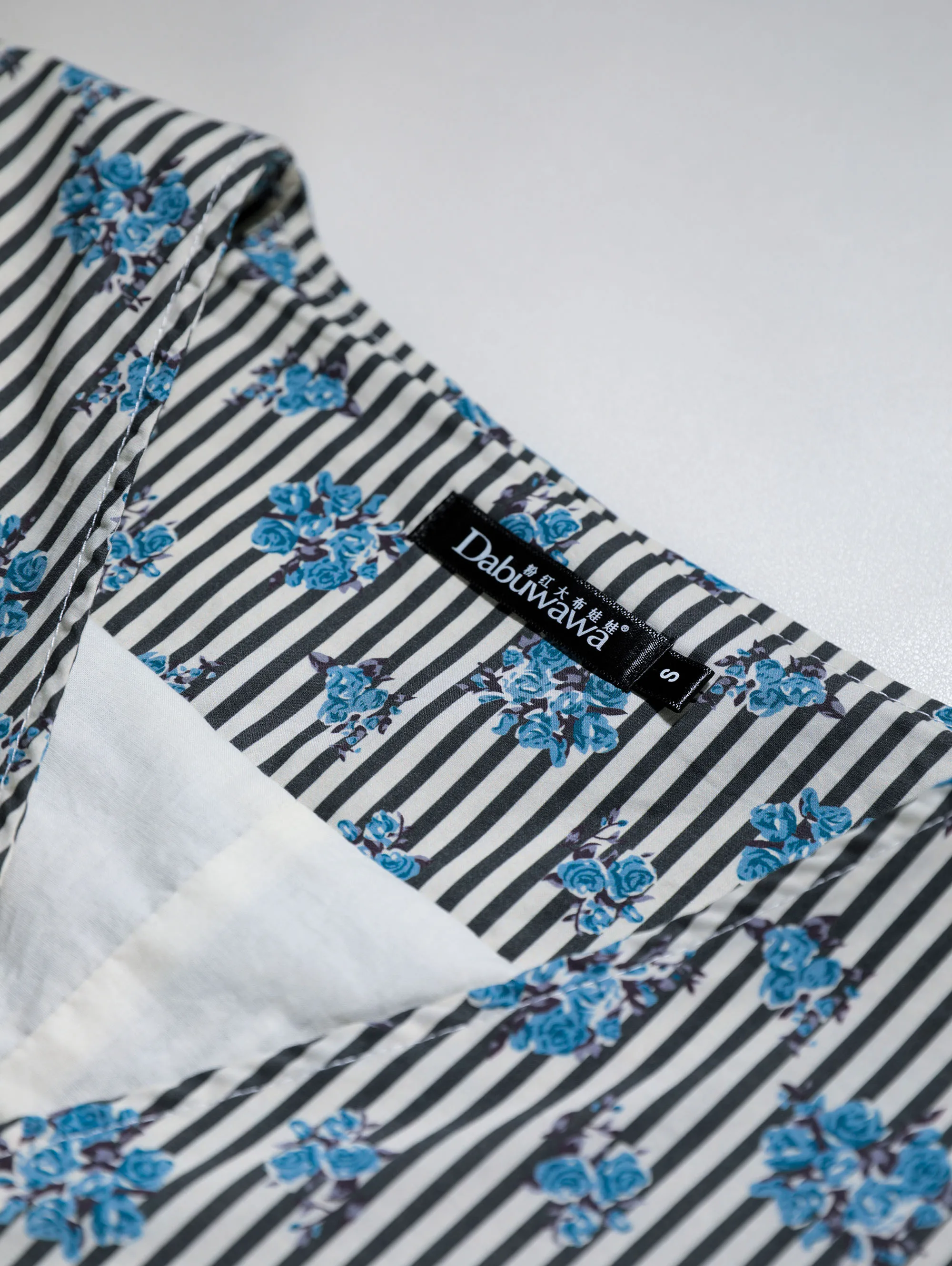 Summer Print Black White Striped Tank Women's Top Blue Rose Vest+Knee-Length A-Line Skirt Separately Y2K DABUWAWA DM2BVT002