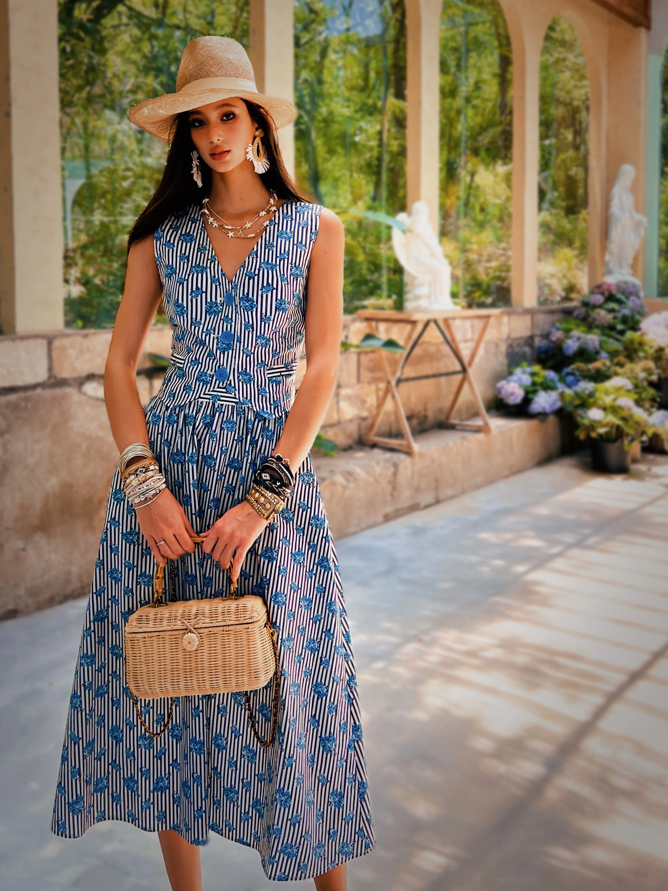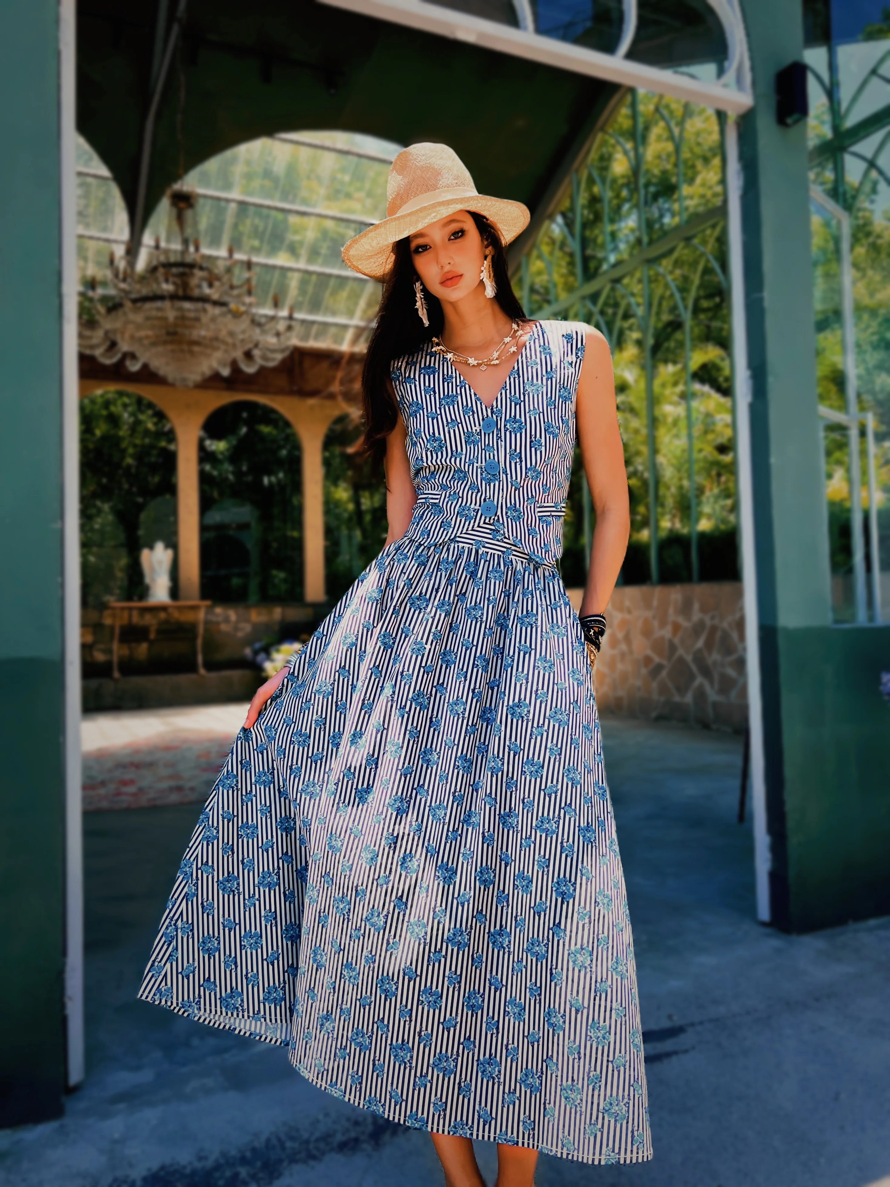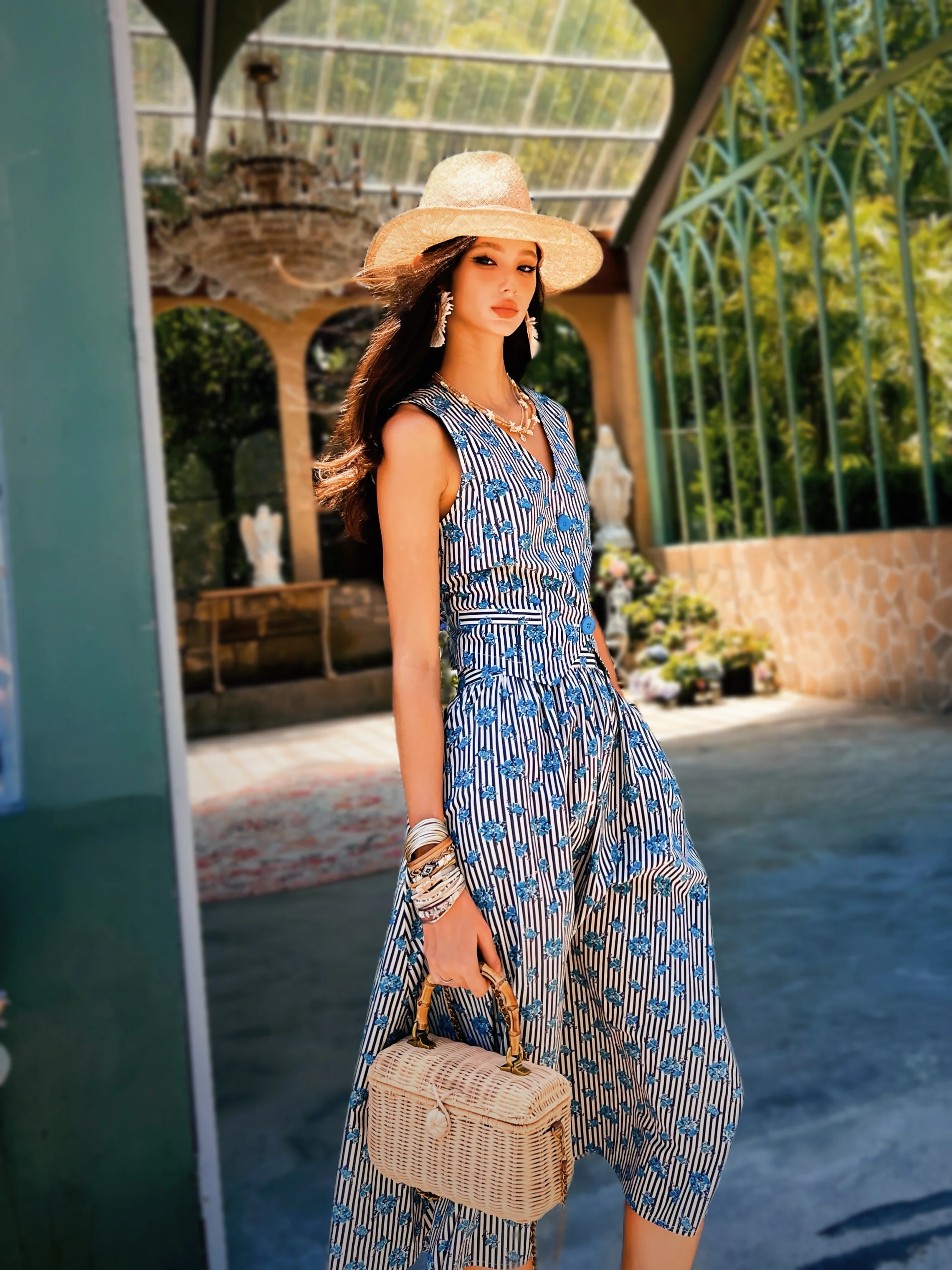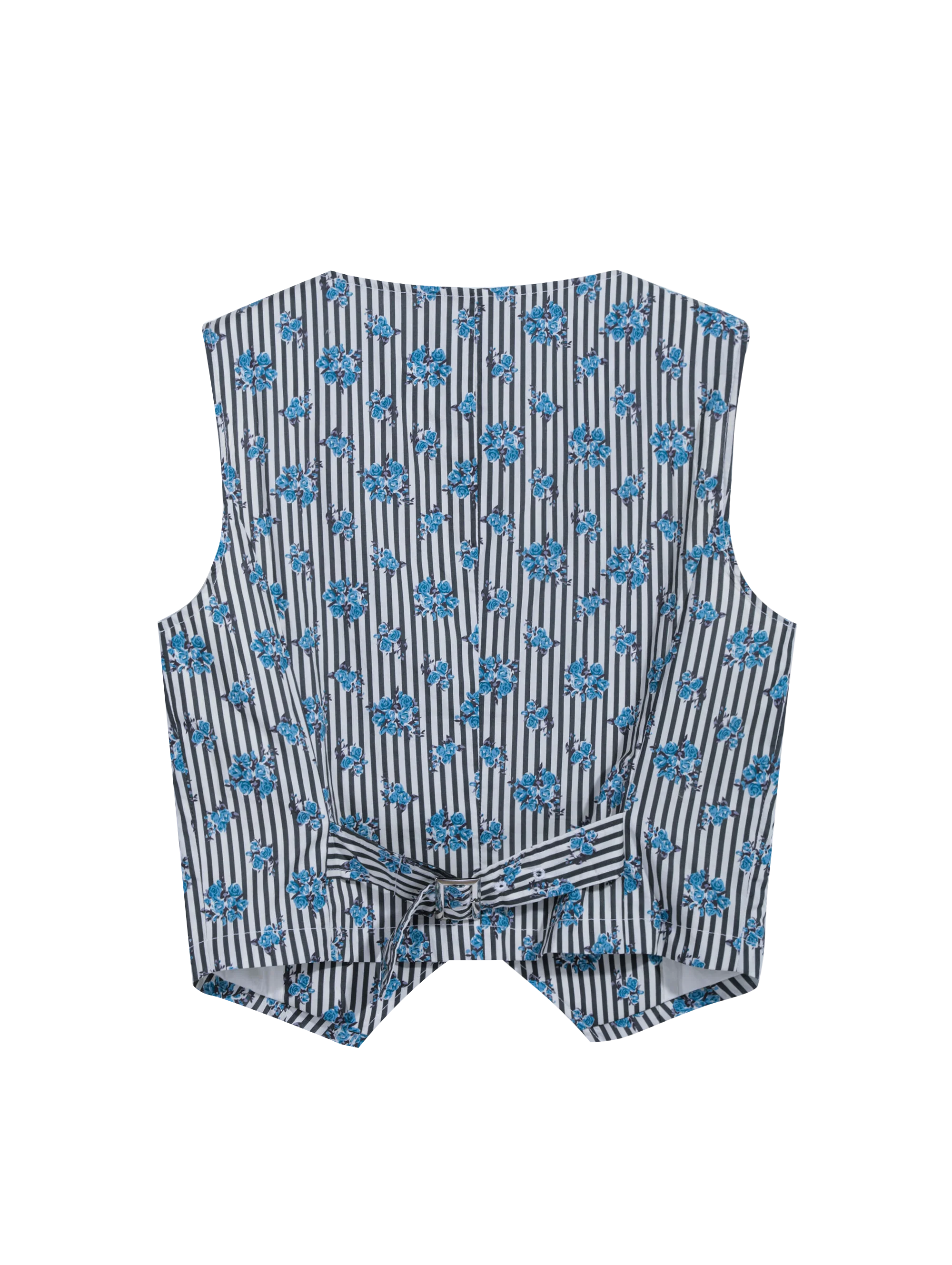 Summer Print Black White Striped Tank Women's Top Blue Rose Vest+Knee-Length A-Line Skirt Separately Y2K DABUWAWA DM2BVT002