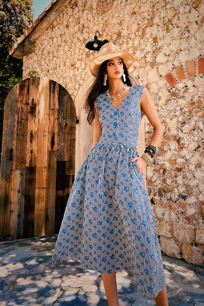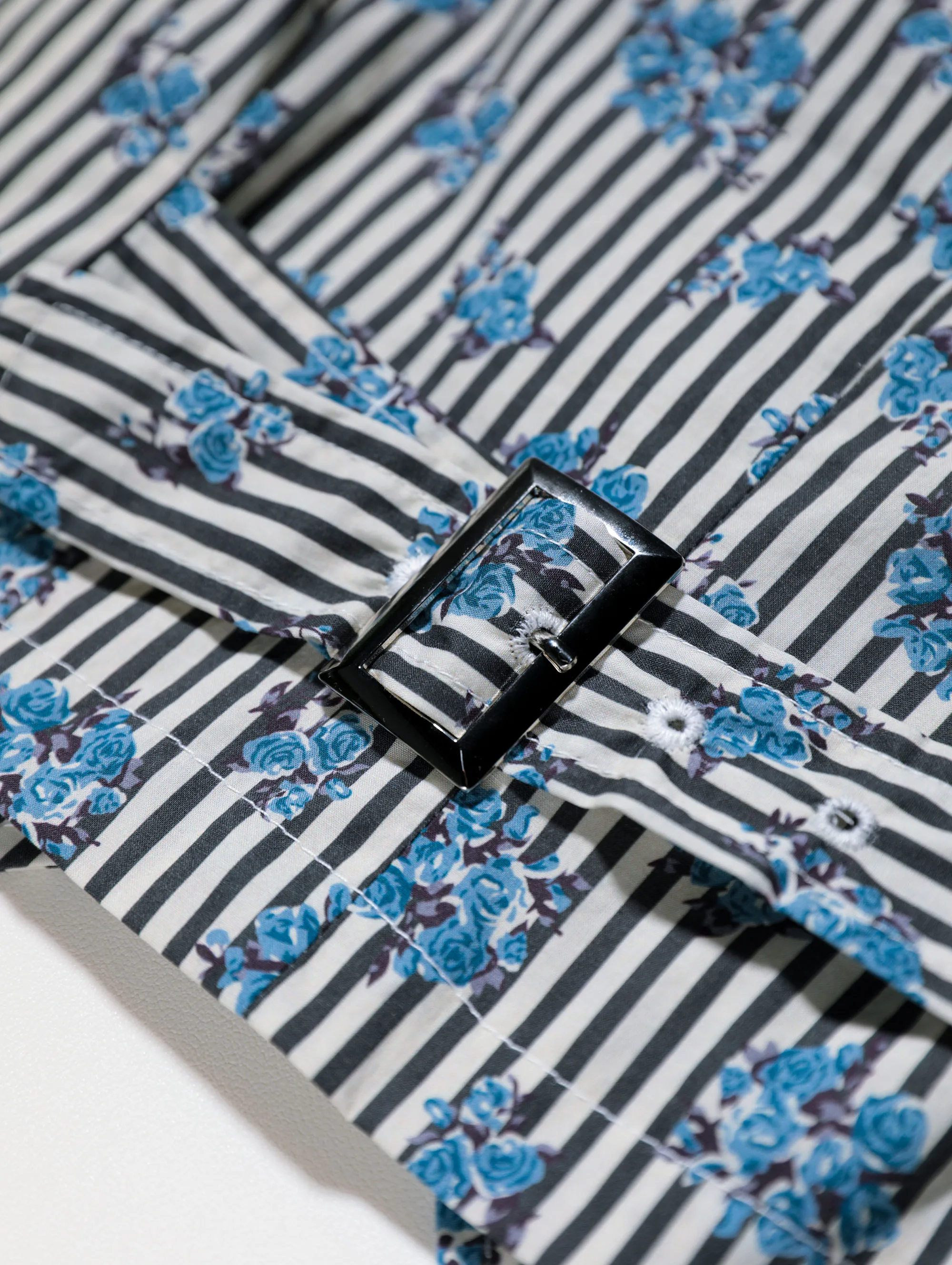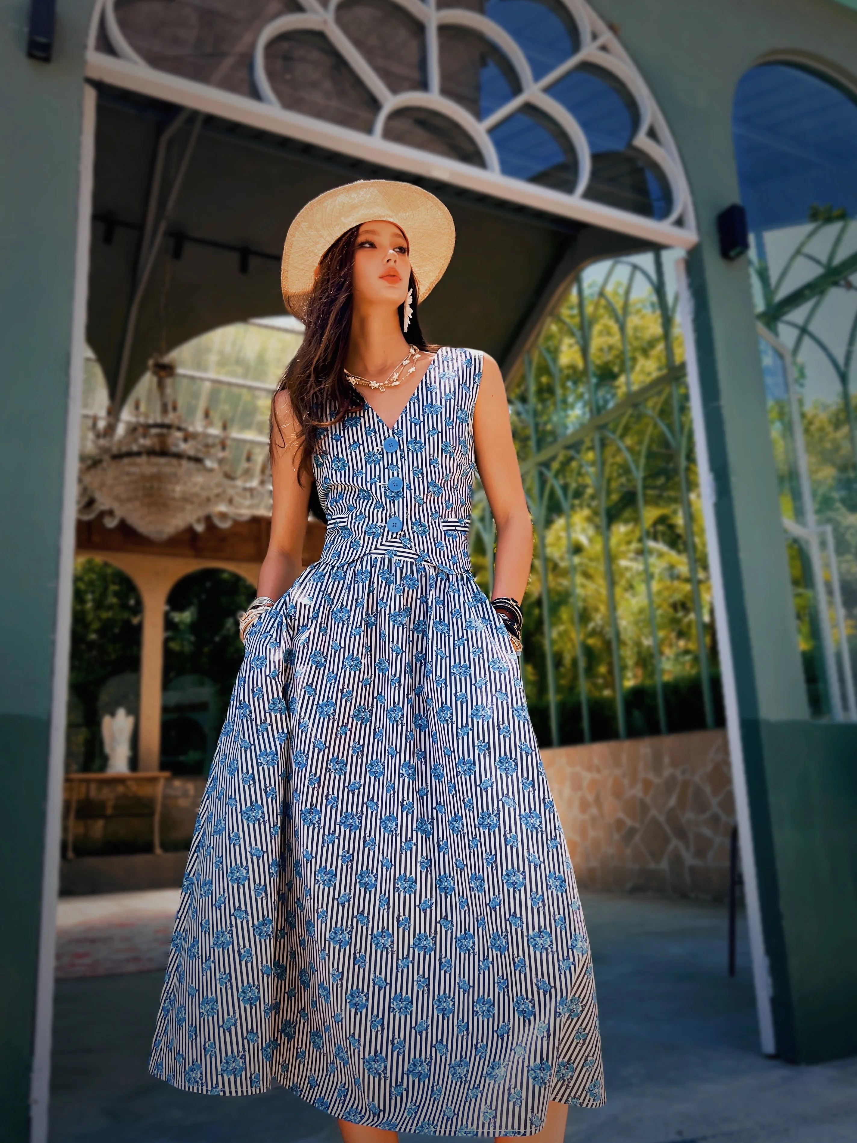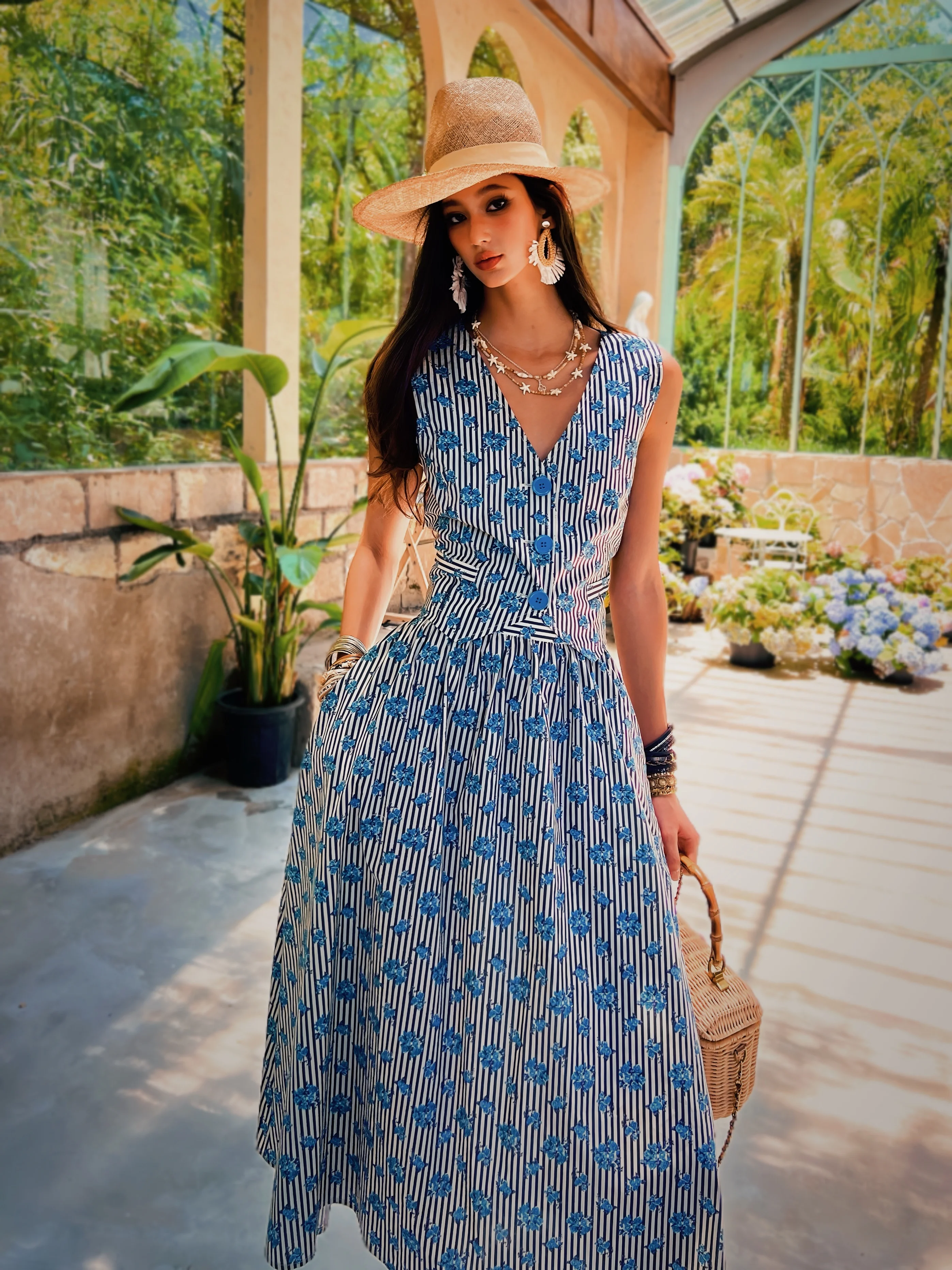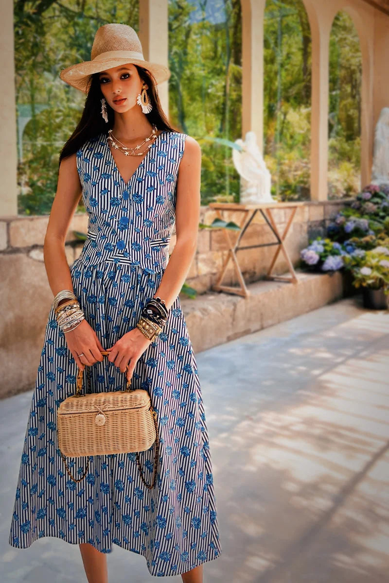 Summer Print Black White Striped Tank Women's Top Blue Rose Vest+Knee-Length A-Line Skirt Separately Y2K DABUWAWA DM2BVT002