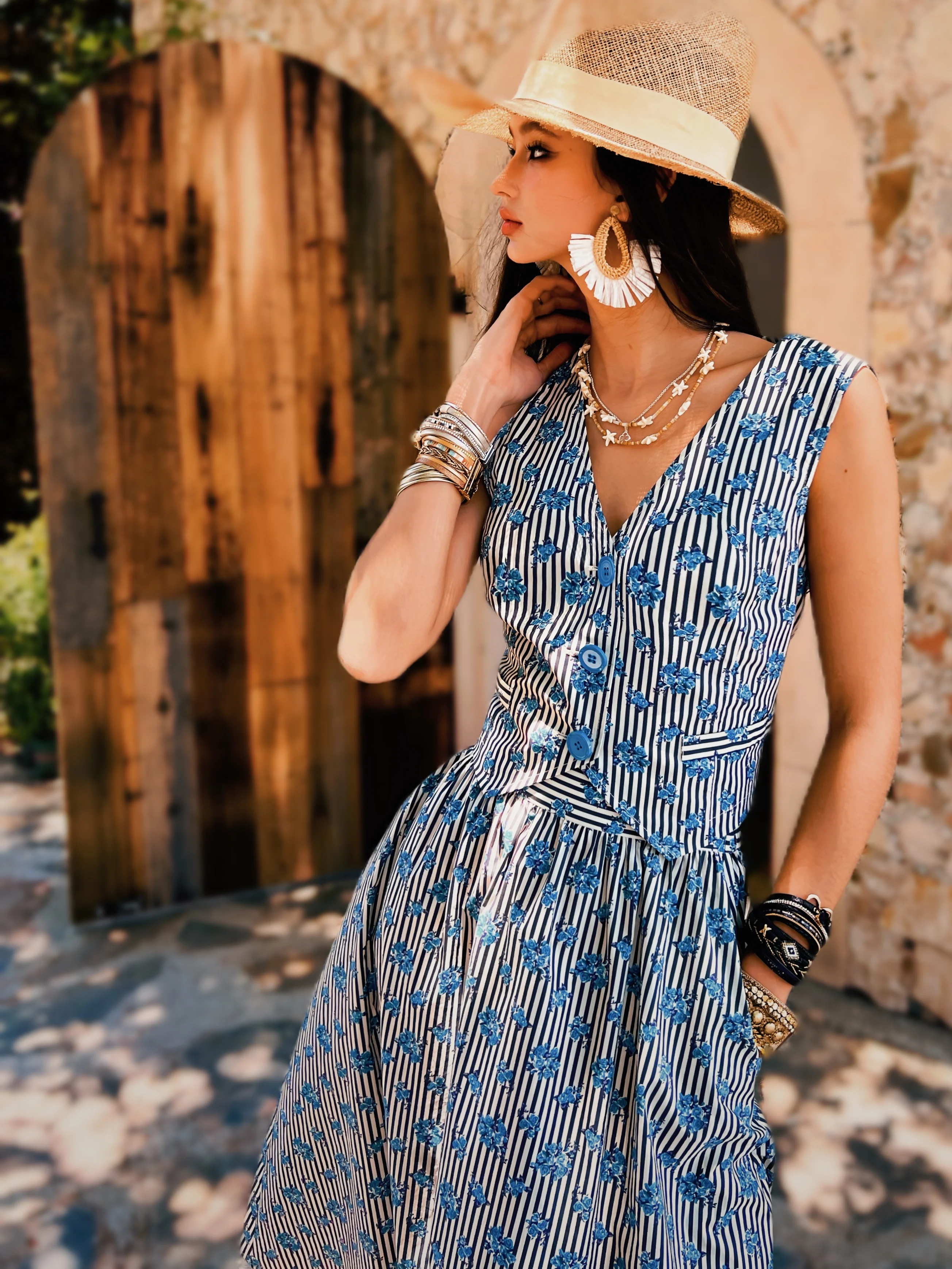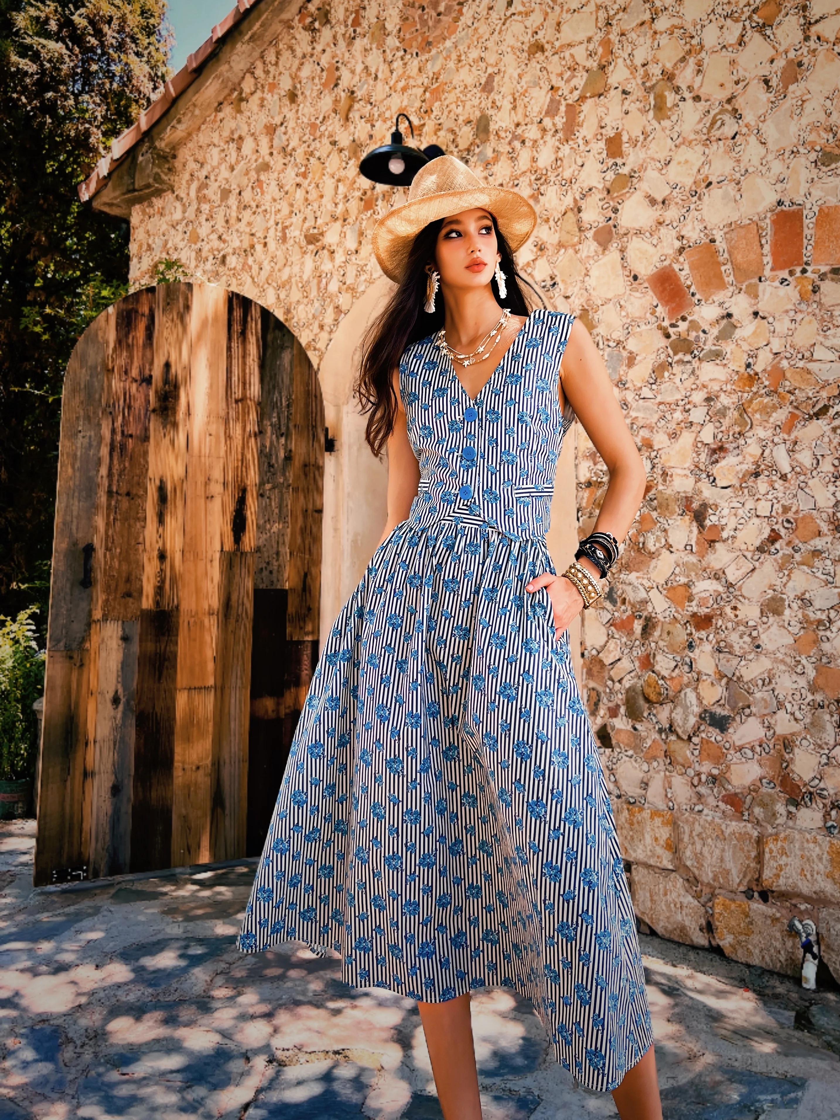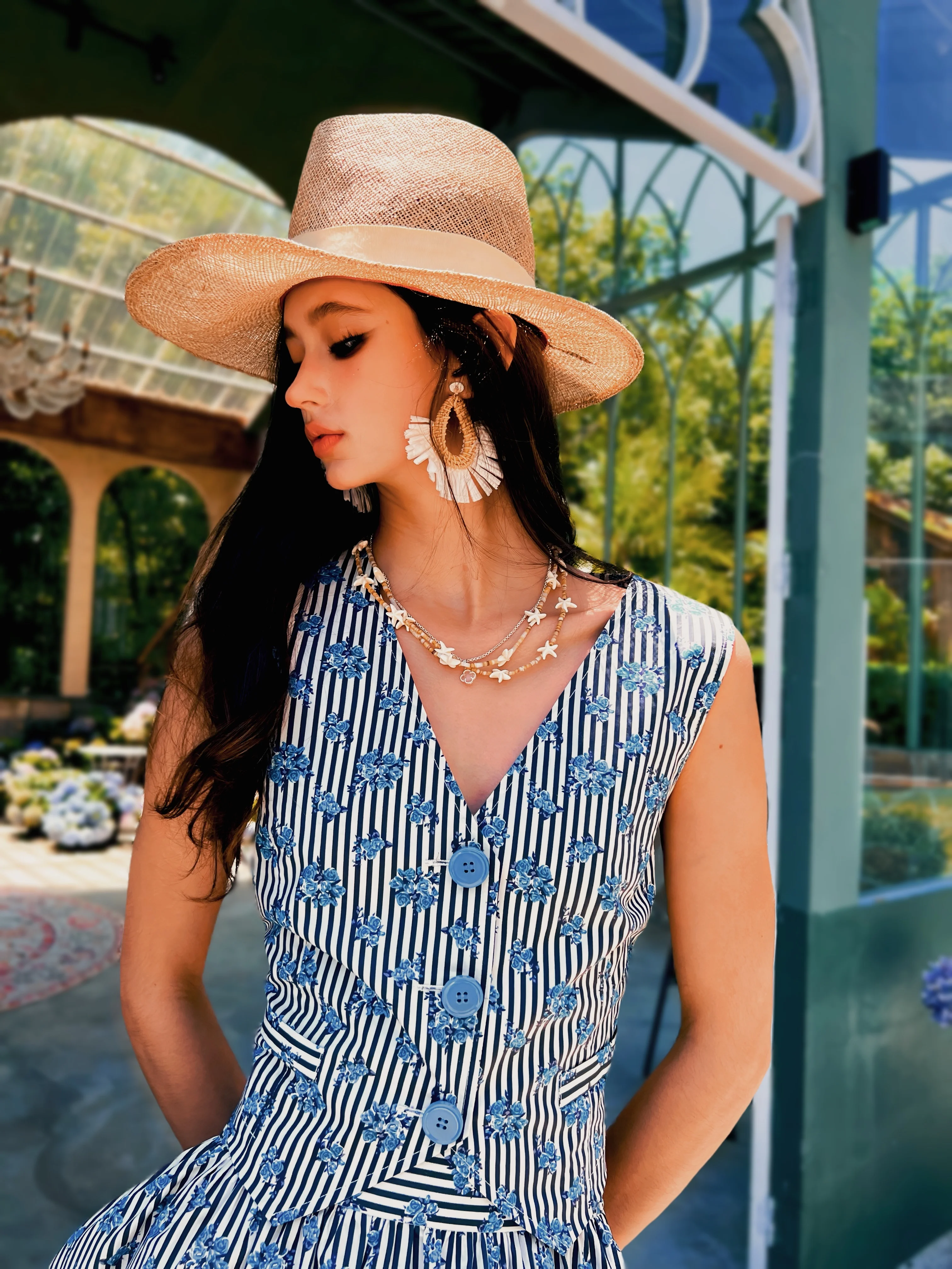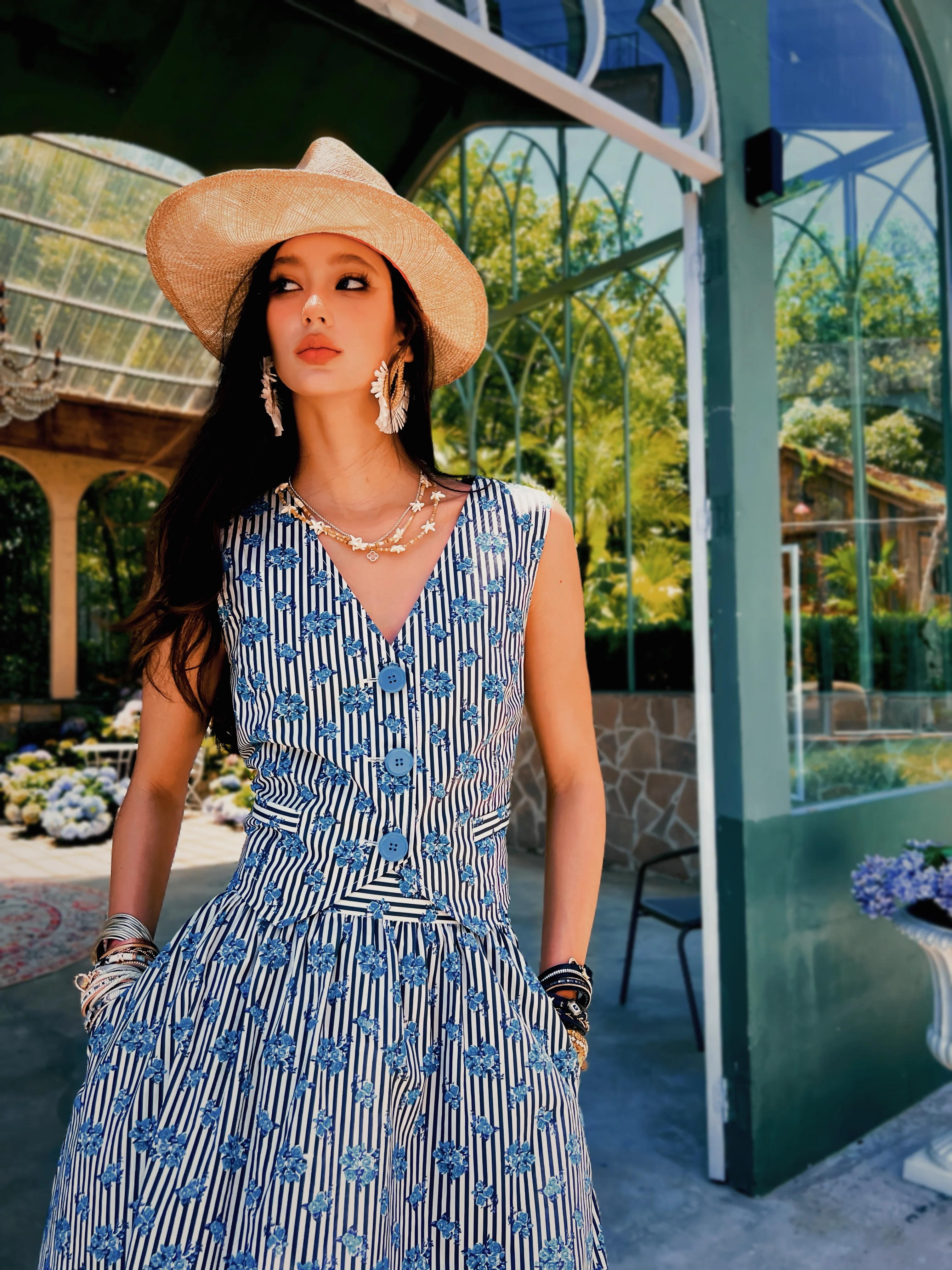 Summer Print Black White Striped Tank Women's Top Blue Rose Vest+Knee-Length A-Line Skirt Separately Y2K DABUWAWA DM2BVT002