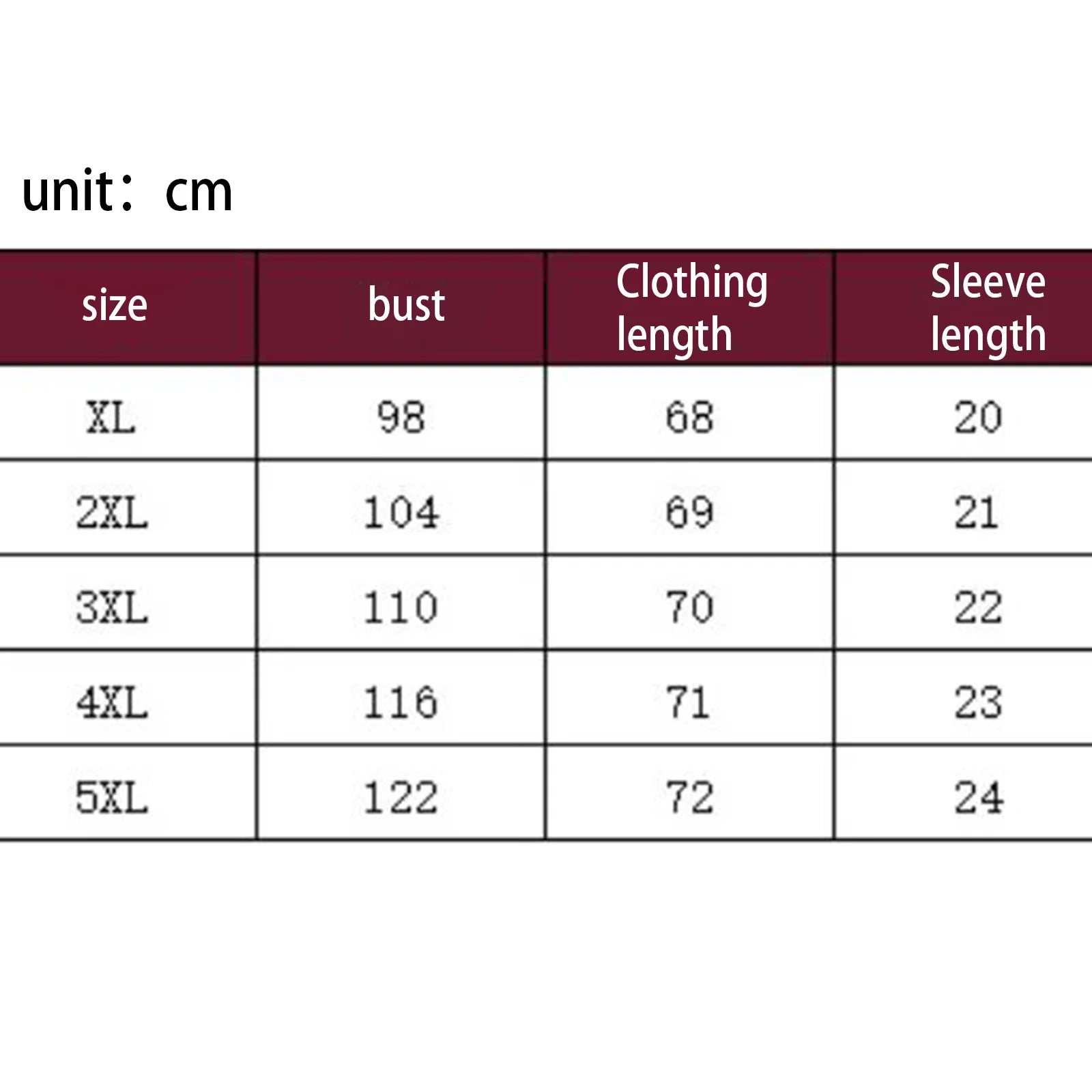 XXXXXL Length: 28.35 Bust: 48.03 Sleeve: 9.45